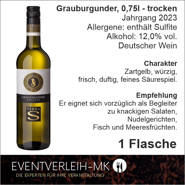 Empfehlung: Er eignet sich vorzüglich als Begleiter zu knackigen Salaten, Nudelgerichten, Fisch und Meeresfrüchten.