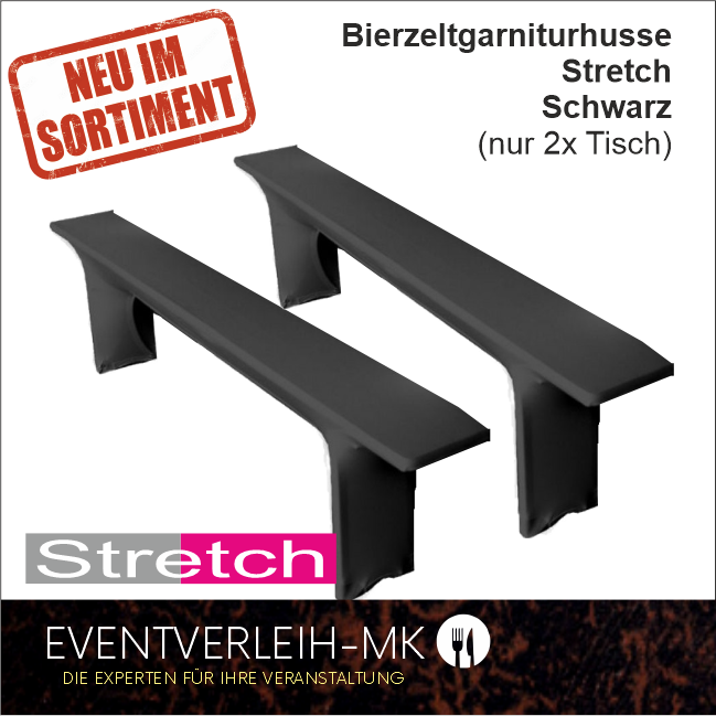 Bierzeltgarniturhusse - Stretch (passend 2,20 x 25cm) nur 2x Bankbezug schwarz inkl. Reinigung