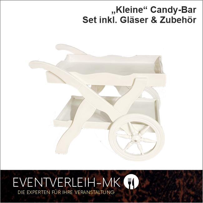 Kleine Candybar - Set inkl. Gläser und Zubehör ohne Füllung - Candy Bar im Vintagelook; rollbar