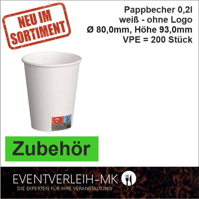 Zubehör - Pappbecher 0,2l - 200 Stck. VERKAUFSWARE