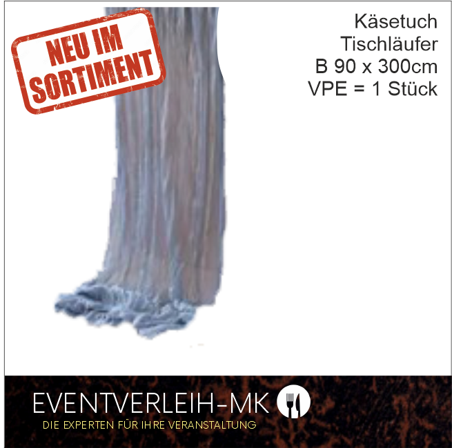 Käsetuch - Tischläufer, Boho, rustikal, 90 x 300 cm, hellblau