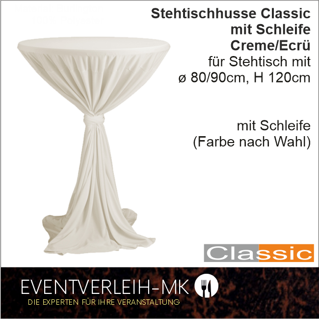 Stehtischhusse mit Schleife inkl. Reinigung Creme