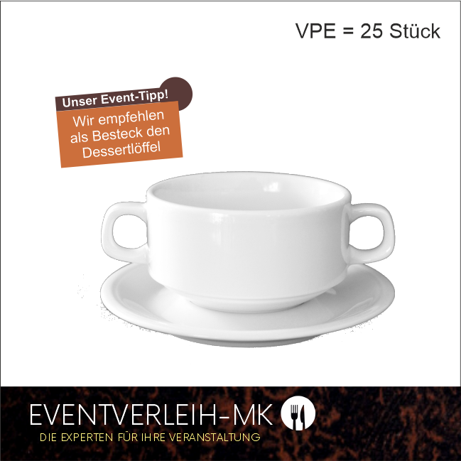 Preis bei Verlust oder Beschädigung Suppentasse: 11,70 €/pro Stück - Ut. 4,20 €/pro Stück (Netto)